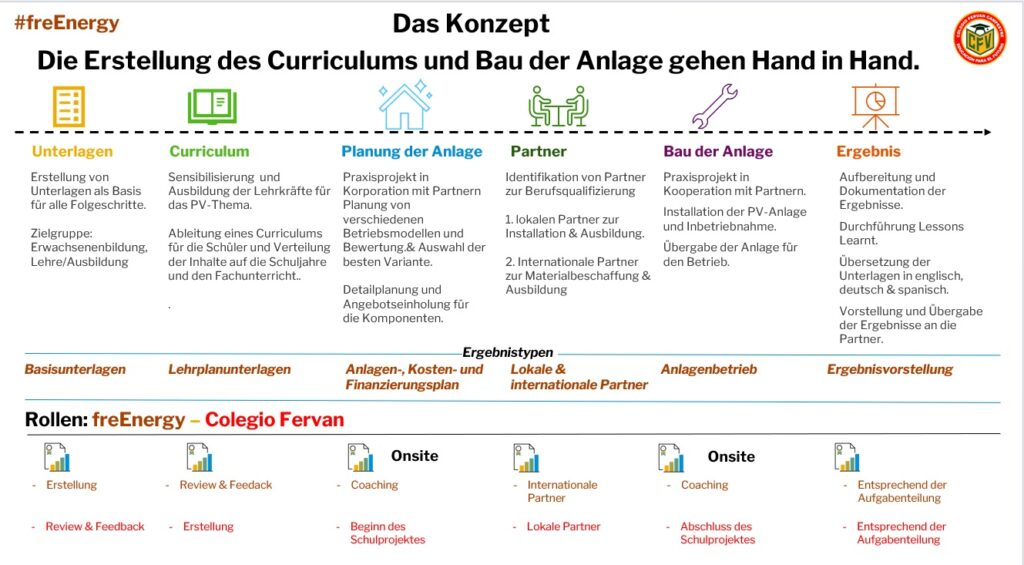 Langfristig ist es das Ziel, den Schülern und Schülerinnen ein staatlich anerkanntes Zertifikat oder – wenn wir träumen dürfen – eine Berufsausbildung an der Schule zu ermöglichen. Kurzfristig haben wir das Ziel formuliert, den Jugendlichen die Möglichkeit zu geben, herauszufinden, ob sie sich eine berufliche Zukunft im Umfeld des Photovoltaik-Business vorstellen können. Idealerweise ergibt für die Talentiertesten die Möglichkeit auf ein (Auslands-)Praktikum. Natürlich unter unserem Motto: Theorie trifft Praxis. Am Ende des ersten Projektabschnitts soll an der Schule eine PV-Anlage installiert werden, damit nachfolgende Schülergenerationen von den Betriebserfahrungen profitieren können. Ganz wichtig ist uns dabei, dass sich die Anlage selbst trägt; denn nur wenn das Projekt wirtschaftlich umgesetzt werden kann, haben wir einen Leuchtturm geschaffen, der hoffentlich auch auf andere Schulen und Organisationen ausstrahlt. Wenn sich Nachahmer finden, freut uns das umso mehr.“